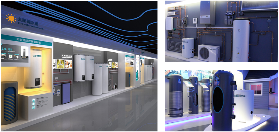 光芒新能源展厅整体设计融入科技、宇宙、环保、新能源等概念,具有产品展示、系统体验、培训教育、新能源科普等功能,设有20平米LED显示屏、企业文化、发展历程、荣誉展示、新能源科普区、水箱系列产品体验区、多能源互补体验区、太阳能集成阳台系统体验区、舒适家居体验区等。