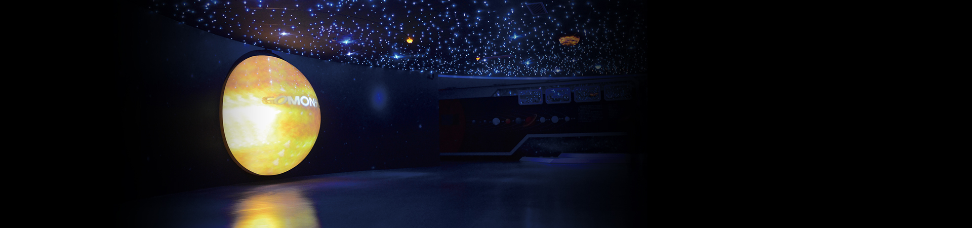 整个展厅以水文化贯穿,以九大行星的星空与太阳融为一体,幽蓝而静谧,展现了新能源行业的责任、光芒企业的文化特质,以及为新能源事业不断砥砺前行的理念。