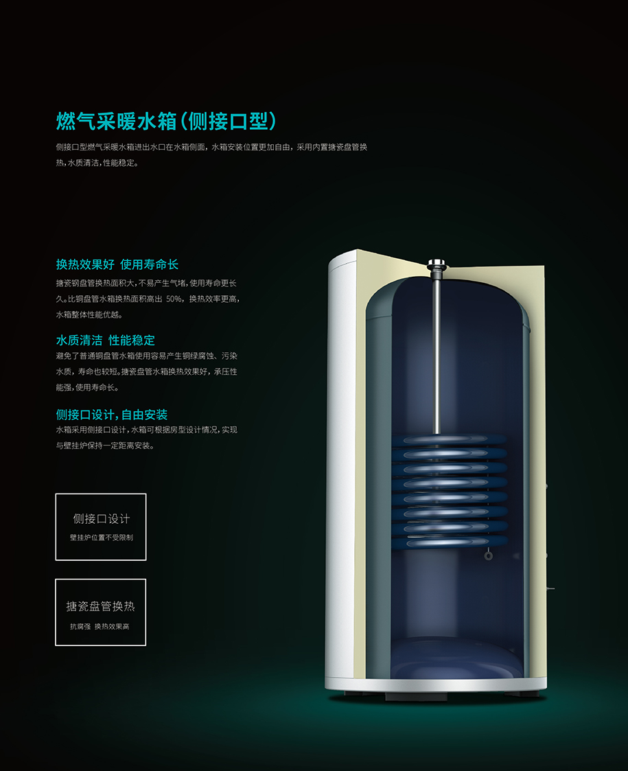 侧接口单搪瓷盘管水箱