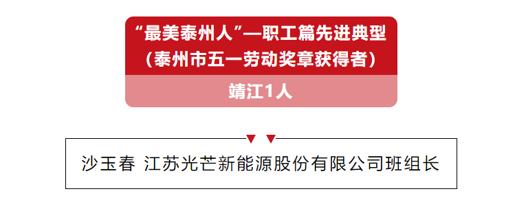 沙玉春是江苏光芒新能源股份有限公司光热事业部G2车间焊接工段长,退伍军人,共产党员。他不但善于班组管理,而且自身技术过硬,哪里需要哪里都能顶岗,是车间主任的得力助手。他无怨无悔地为企业的发展贡献着自己的青春和汗水,以实际行动诠释了新一代职工的奉献精神与匠心品格,赢得了员工群众的高度赞扬。