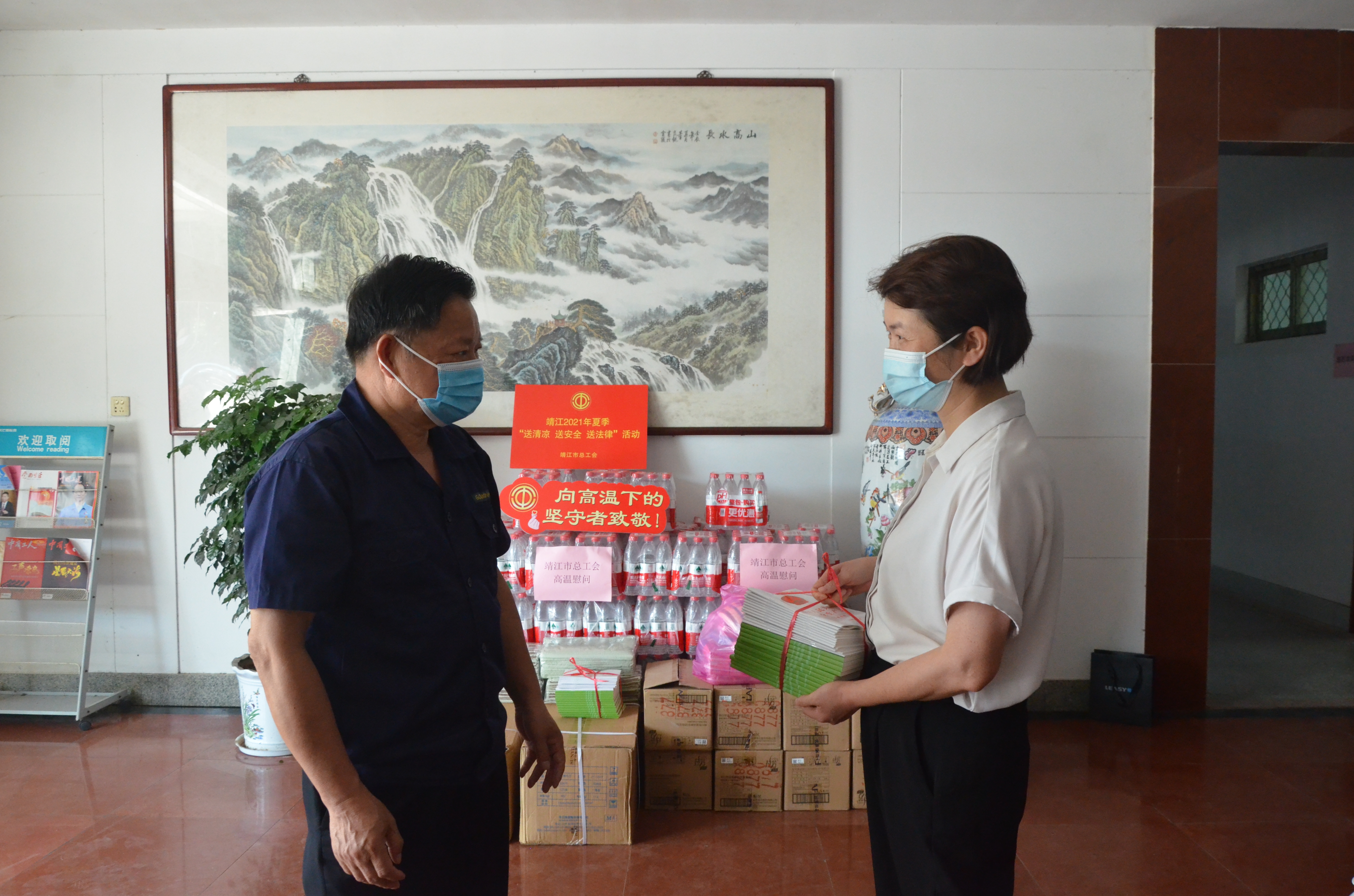 “高温天气,大家工作辛苦了,要注意防暑降温,照顾好自己的身体……”王艳主席来到光芒新能源,与一线职工亲切握手,给他们送上矿泉水、毛巾、香皂等清凉解暑的物品。在深入车间了解工人们的劳动环境和工作强度后,她要求光芒新能源工会负责人要重视高温季节安全生产,切实做好各项防暑降温措施和卫生防疫工作,合理安排作息时间,做到劳逸结合、保障职工健康。